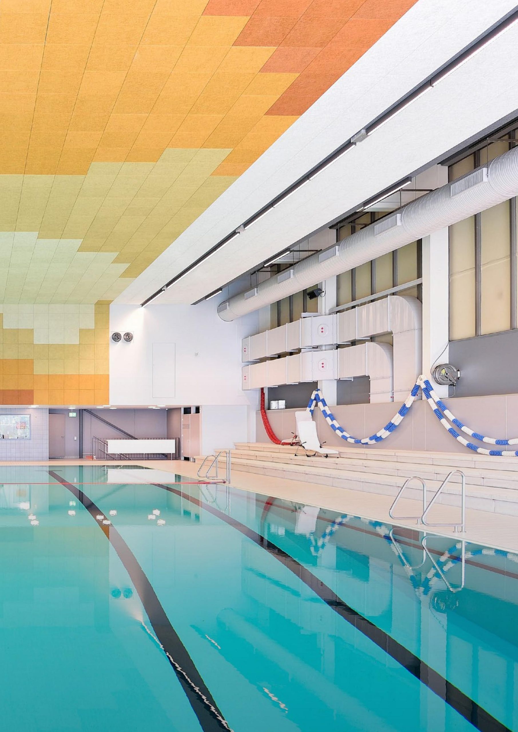 • Instalaciones deportivas y piscinas: gracias a su resistencia al impacto (DIN 18032) y su clasificación de resistencia al agua (Clase D, 98%).