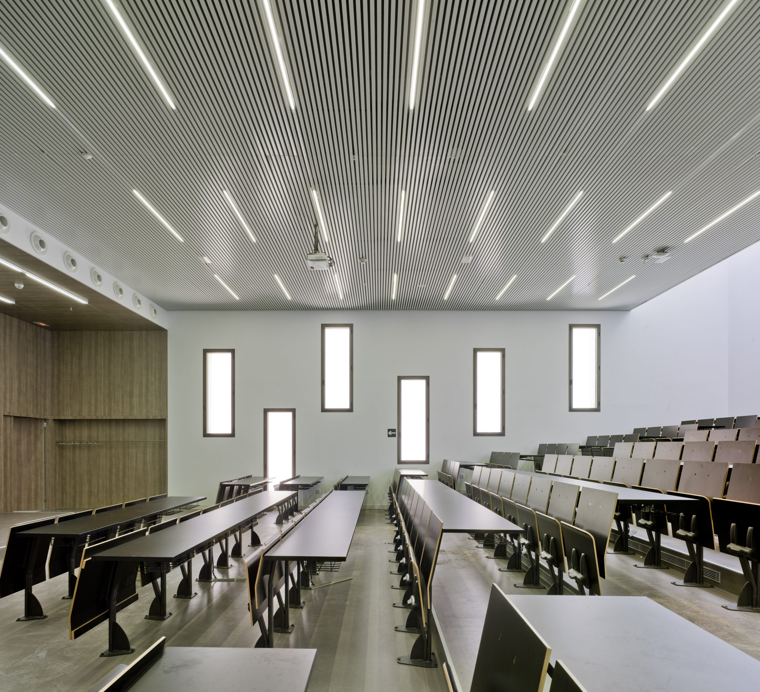 Este tipo de techo de lamas verticales permite jugar con la luminosidad de espacios diáfanos y abiertos. Mediante un sistema de rastreles lacados en negro, se construye una estructura de lamas verticales de 100, 150 mm. o 200 mm. de altura. Según el tamaño de la lama y las necesidades del proyecto, éstas pueden colocarse a diferentes distancias en el rastrel permitiendo multitud de combinaciones distintas. Las lamas son fabricadas en aluminio de gran resistencia y durabilidad, y al tratarse de un techo de cielo abierto se garantiza un fácil mantenimiento y acceso al plenum. Con la solución de iluminación desarrollada especialmente para este modelo, se posibilita la creación de espacios singulares e integrados.